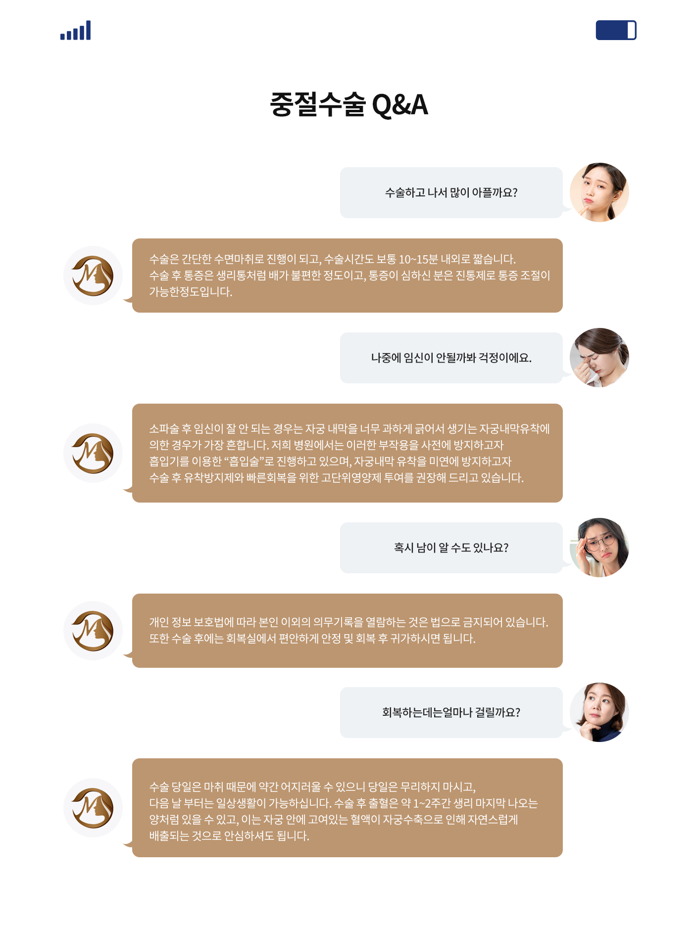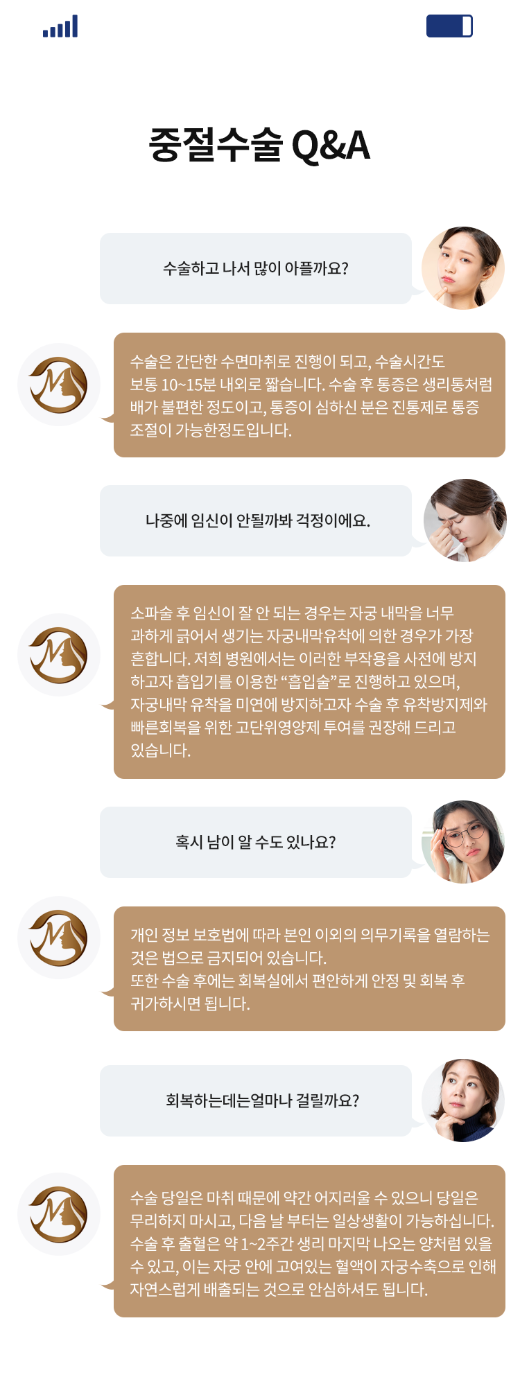하지만 중절 수술은 여성의 몸과 마음에 큰 상처를 남기기 때문에 충분한 고민과 상담을 거쳐 결정하셔야 합니다.