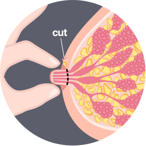 젖관을 절개하기 때문에 함몰유두 재발의 위험이 낮도록 합니다.